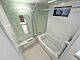 明るい空間で清潔感があります。ゆったりとした浴槽が設置されています。壁面のデザインがアクセントになっています。窓があり換気にも配慮されています。収納棚もあり使い勝手が良いです。