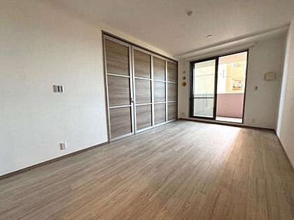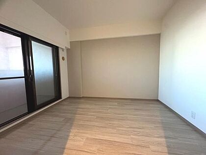 ナチュラルなフローリングが特徴の洋室です。大きな窓からはたっぷりの光が入ります。シンプルな内装なのでアレンジしやすい空間です。壁面も広くレイアウトの自由度があります。