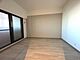 リビングには大きな窓がありバルコニーへの出入りもスムーズです。淡いフローリングが空間を明るく演出します。壁面のアクセントカラーが印象的です。機能的なレイアウトが魅力のリビングです。