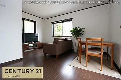 現況の物件画像にCGにより家具が設置してあります。実際には家具は設置されておりません。家具は価格に含まれません。LDKは約13.5帖の広さ LDKからサンルームへつながっています