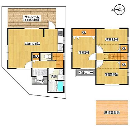 3LDK+サンルーム+車庫各部屋2面採光で風通しの良い一邸です