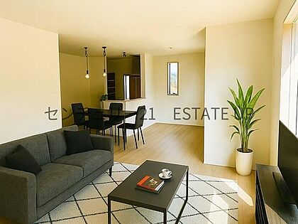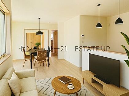 【リビング】リビング空間にキッチン。みんなで食事を楽しめる空間。※ホームステージングしているイメージ図です。