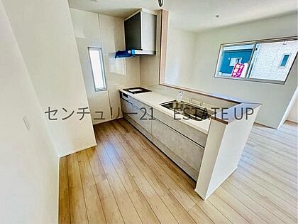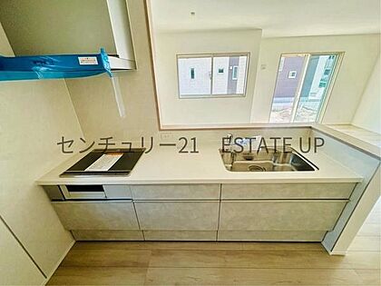 【キッチン】火力の調整が楽で安全性の高い人気のIH。お子様も見守れる対面キッチンです。
