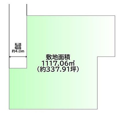 | 土地面積/坪(坪単価) | 1,117.06m2(登記簿)/338.5坪(3.00万円) | 代表的な接道 | 一方 私道 北西 4m ※詳細は備考欄をご確認ください |
