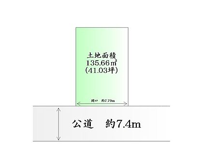 | 土地面積/坪(坪単価) | 135.66m2/41.11坪(43.50万円) | 代表的な接道 | 一方 公道 北 7.4m ※詳細は備考欄をご確認ください |