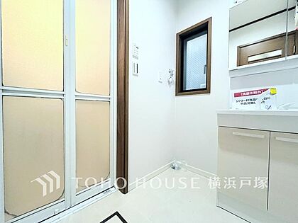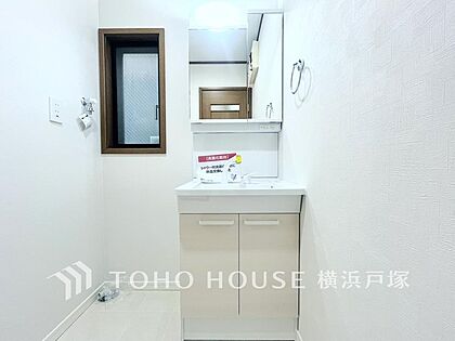 「Powder room」ご家族の1日が始まり、1日の終わりを締めくくる洗面空間。洗濯機を配置しても十分なスペースを確保した設計となっております。