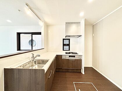 L字型だと料理するスペースも広々と使えます。コンパクトに動けてお料理ラクラク。