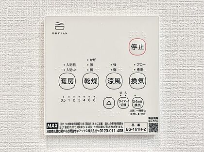 浴室涼風暖房換気乾燥機付きなので、お天気が悪い日のお洗濯も安心!