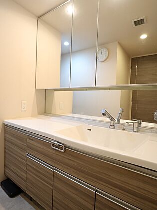 身だしなみを整えやすい、三面鏡付洗面化粧台です。