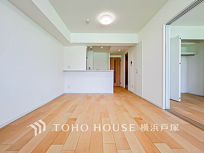 【Living room】明るく開放的な空間が広がるLDK。室内には豊かな陽光が注ぎ込み、爽やかな住空間を演出。ホームパーティーでもゲストと一緒に料理を楽しみながら楽しい時間を過ごせそう。
