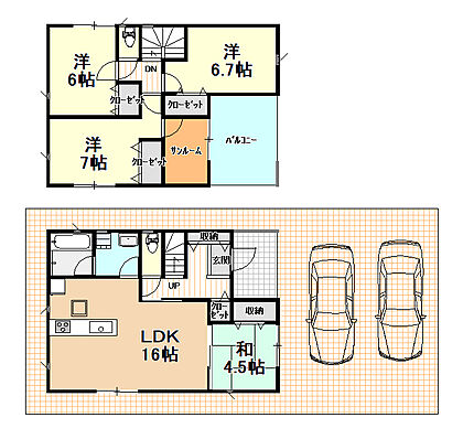 | その他 | ●温水洗浄便座 ●全居室収納 ●床下収納 ●駐車場あり ●所有権 ●2階建て ●木造 ●前面道路6m以上 ●コンビニ 400m以内 ●子育てに便利な施設が充実 |