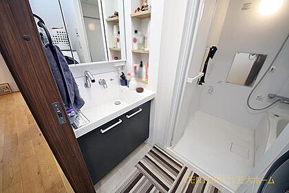 洗髪に使えるハンドシャワー機能がついた洗面台で忙しい朝も快適に支度ができそうです♪大きな洗面台のボウルはホームクリーニングの時にも使いやすいです。
