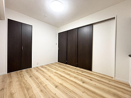 出窓のある6.1帖洋室。全ての居室に収納を設置。お部屋にあまり収納家具を置く必要が無くなり、ゆったりとした住空間が実現可能です。