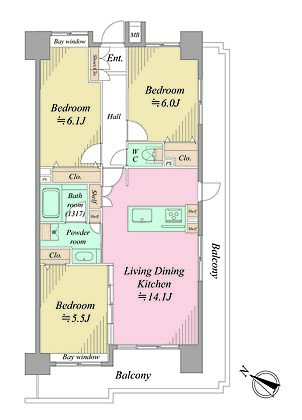 バルコニーが2面にあり陽当たり良好、高層階×角部屋で窓が多いため風通し良いです。ペットが3匹まで飼育できます。