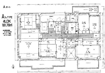 | 間取り | 4LDK | 専有面積 | 181.78m2(壁芯) |