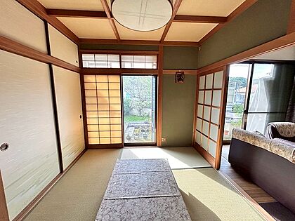 本格的な和室には床の間や障子が揃い、伝統美と落ち着きを感じられる空間。来客のおもてなしや家族団らんの場にふさわしい一部屋です。