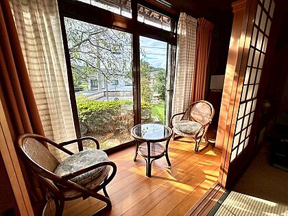 お庭を見渡せる広縁は、自然を身近に感じられる癒しの空間。四季の移ろいを楽しみながらゆったりとした時間を過ごせます。