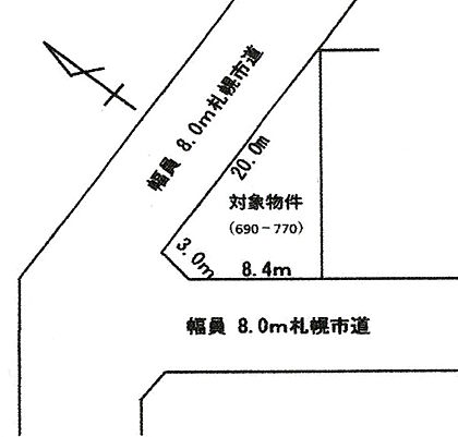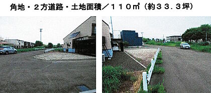 | 土地面積/坪(坪単価) | 110.39m2/33.45坪(14.90万円) | 代表的な接道 | 角地 公道 北 8m、西 8m ※詳細は備考欄をご確認ください |