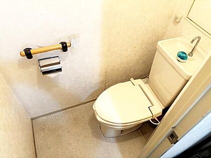 手すりが設置されており安心してご利用いただけるトイレです。シンプルなデザインで清潔感があります。