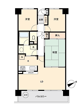 | 間取り | 3LDK | 専有面積 | 60.96m2(壁芯) |