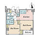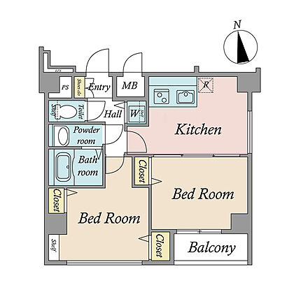 8階建て4階部分、2K、37.35平米、南東角部屋
