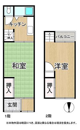 | 間取り | 2K | 構造及び階数 | 木造 2階建て(連棟式) |