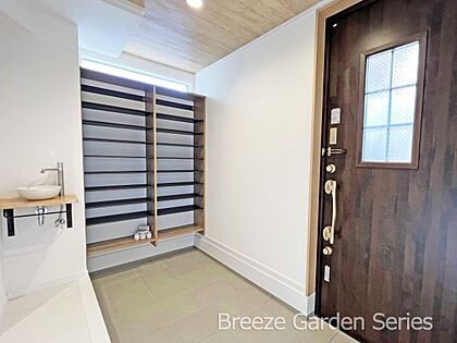 内装:大成こだわりの参考プラン:玄関 たくさんの靴が収納可能 玄関手洗い器つき