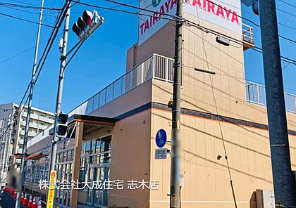 周辺環境:スーパー 140m TAIRAYA朝霞三原店(徒歩2分。毎日のお買い物に便利です!)
