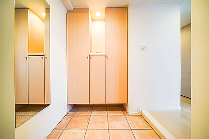 玄関に姿見があるため、外出前のヘアスタイル、ファッションチェックに便利です