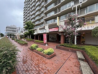 建物前は綺麗に舗装され、気候の良い季節には一息つけるベンチの設置がございます。植栽も施されています。【現地外観】