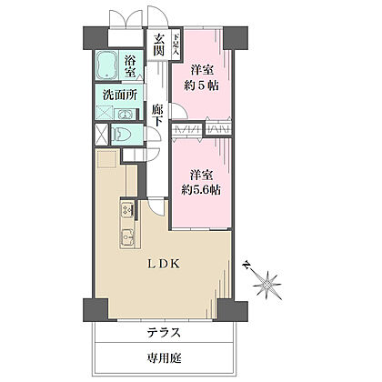 テラス&専用庭付。開口が広く確保されたLDKは開放的な空間。2025年11月リフォーム実施予定。
