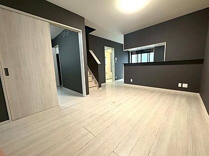 【リビング】約15帖のリビングルーム。キッチンはコミュニケーションの取りやすい対面式です!※残置物をCG加工にて消しております。
