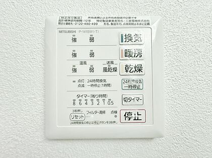 浴室乾燥機がついていますので、入浴後の湿気対策も安心です。