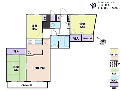 3LDK、専有面積62.63平米、バルコニー面積5.7平米