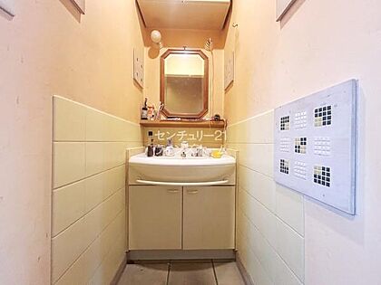 使い勝手の良い三面鏡タイプの洗面化粧台。鏡の角度が変えられるのでヘアスタイルやメイクにこだわる方に嬉しいですね!なにかと物が多くなりがちな洗面室もリネン庫付きなのでスッキリ使えます!