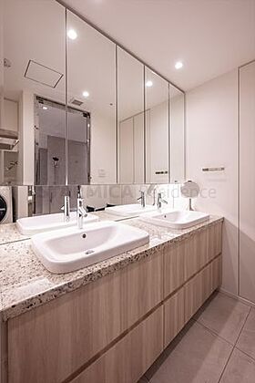 ゆとりある洗面化粧台は、2人並んでも快適にお使いいただけます