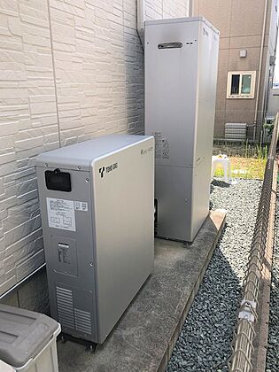【エネファーム】 ガスの使用時に電気を作り出し、この時に発生する熱を給湯などに利用します!エネルギーを有効活用するので省エネ!
