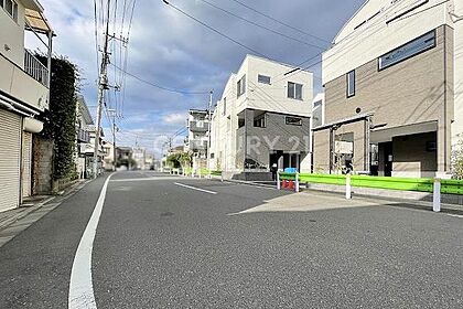 西側前面道路(→南方向へ撮影)/駅近の利便性高い立地ながら現地周辺は落ち着いた住環境です。徒歩5分圏内に小・中学校があり、お子様の通学にも安心です