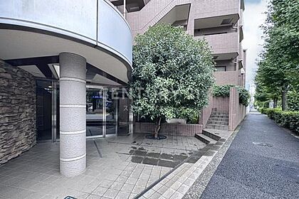 共用エントランス/北西側の駒沢通りにはいちょう並木が続きます。