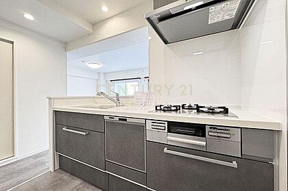 システムキッチン/新規交換済み、毎日の家事負担を軽減する食器洗浄乾燥機・浄水器一体型水栓付きです。