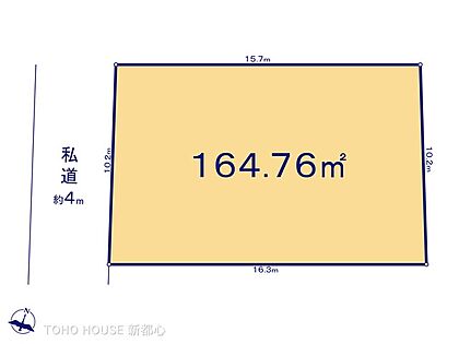 | 土地面積/坪(坪単価) | 164.76m2(実測)/49.93坪(66.10万円) | 代表的な接道 | 一方 私道 西 4m ※詳細は備考欄をご確認ください |
