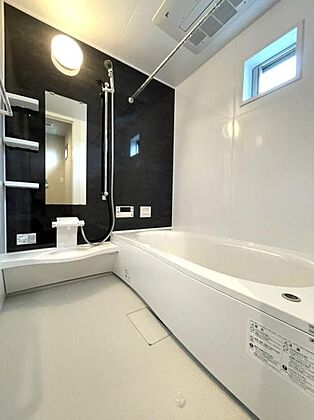 高級感のある黒パネルを採用した浴室。浴室暖房乾燥機を備え、寒い季節も快適に過ごせます。