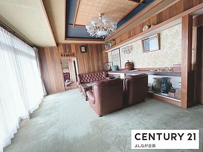 約10帖の玄関横の居間・応接室は、大きな窓から日差しが差し込み明るい空間です。折り上げ天井がお洒落です♪