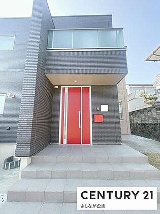 真っ赤な玄関扉が目を引きます☆郵便BOXと色を合わせたこだわりのポイントです◎