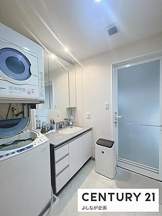 清潔感溢れるシンプルな洗面化粧台です♪隣には洗濯機を置くスペースもあります♪