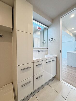 収納がたくさん設けられた洗面台は忙しい朝も重宝します!!(2025年9月撮影)