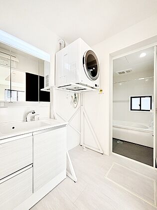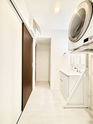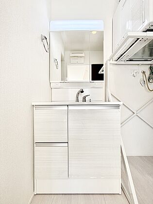洗面所には洗剤のストックやタオルなどの収納に便利なリネン庫があります