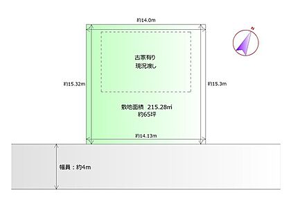 | 土地面積/坪(坪単価) | 215.28m2(登記簿)/65.24坪(15.00万円) | 代表的な接道 | 一方 公道 南 4m ※詳細は備考欄をご確認ください  |