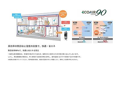 【エコエア90】 エコエア90は、熱(温度)と湿度の両方を交換する、世界トップクラスの熱回収率90%を実現した高効率・全熱交換換気システムです。