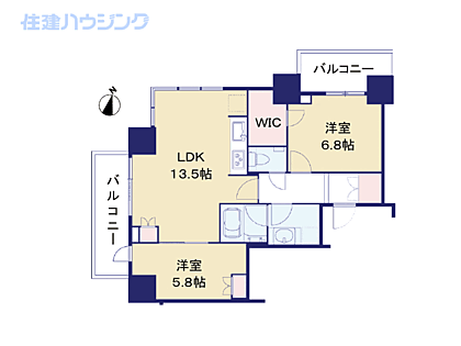 間取り 2LDK 専有面積 60.64m2